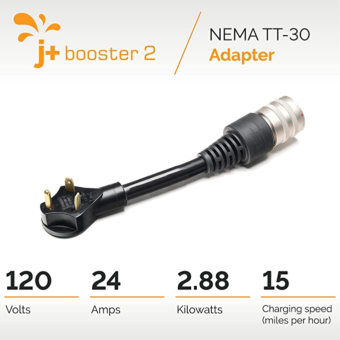 The J+ BOOSTER 2 is adaptable and can use either a Level 1 or Level 2 charging system, which can provide from 120 to 240 volts of power. It's interchangable adapters allow you to easily switch plugs based on the power outlets available to you. The J+ BOOSTER 2 automatically recognizes the input voltage from the wall socket and outputs the correct power to your EV.