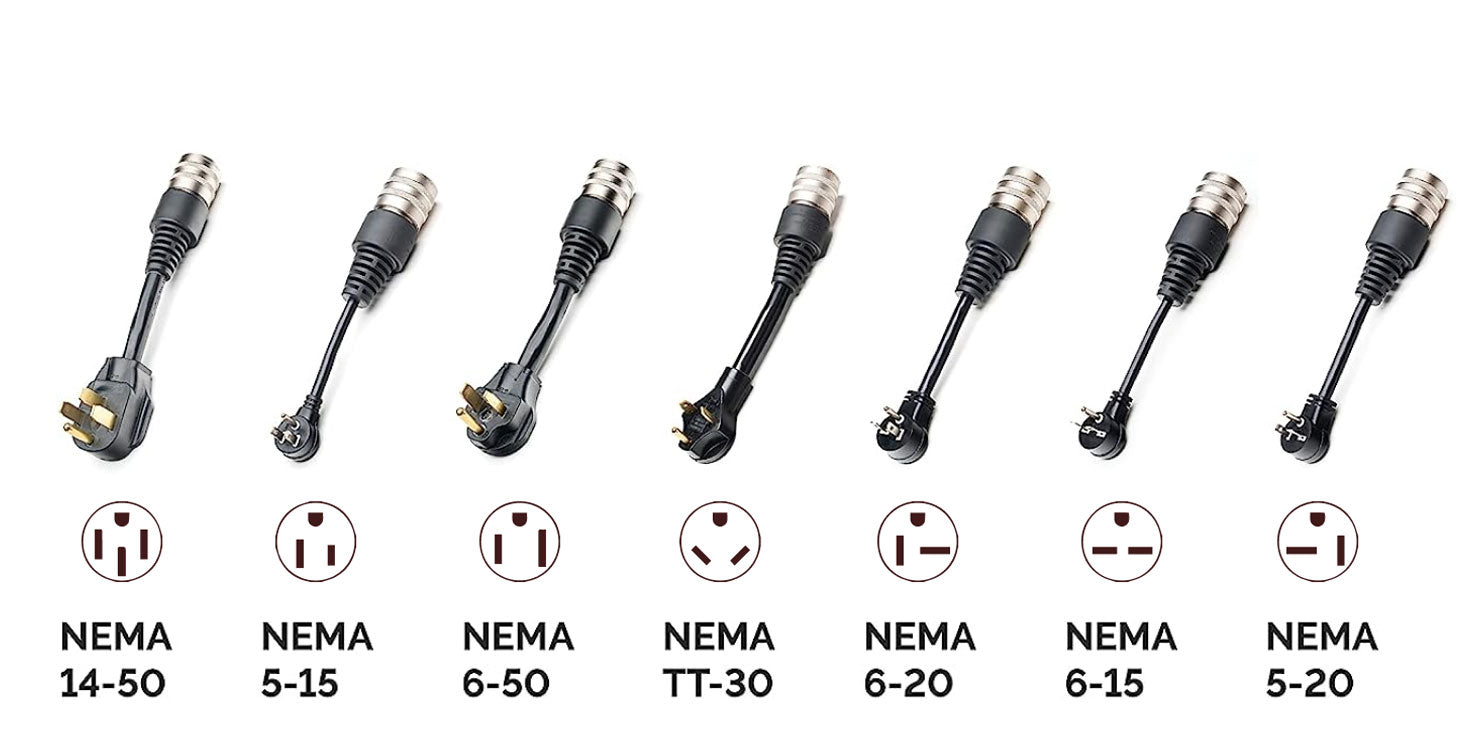 - Interchangeable NEMA Adapters to fit popular Level 1 & Level 2 outlets.